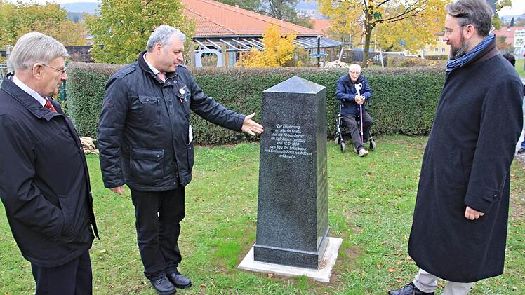 Die Anregung für den Gedenkstein, es ist der ehemalige Grabstein von Martin Baetz der auf dem Friedhof in Eyrichshof gestanden hat, kam von Kreisheimatpfleger Günter Lipp. "Der Bürgerverein Ebern setzte sich schon im Jahr 2010 für ein kleines Denkmal für Martin Baetz ein", erläuterte Lipp.