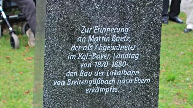 "Die Leistung von Martin Baetz verdient Anerkennung, die mit dem Gedenkstein zum Ausdruck kommen soll", sagte Bürgermeister Jürgen Hennemann (SPD). Die Eisenbahnstrecke Bamberg-Ebern habe sich von der Rentabilität her zur zweitbesten Lokalbahn des damaligen Königreiches Bayern entwickelt. Leider habe die Bahn heute in Ebern ihren Endpunkt, der früher in Maroldsweisach gelegen habe.