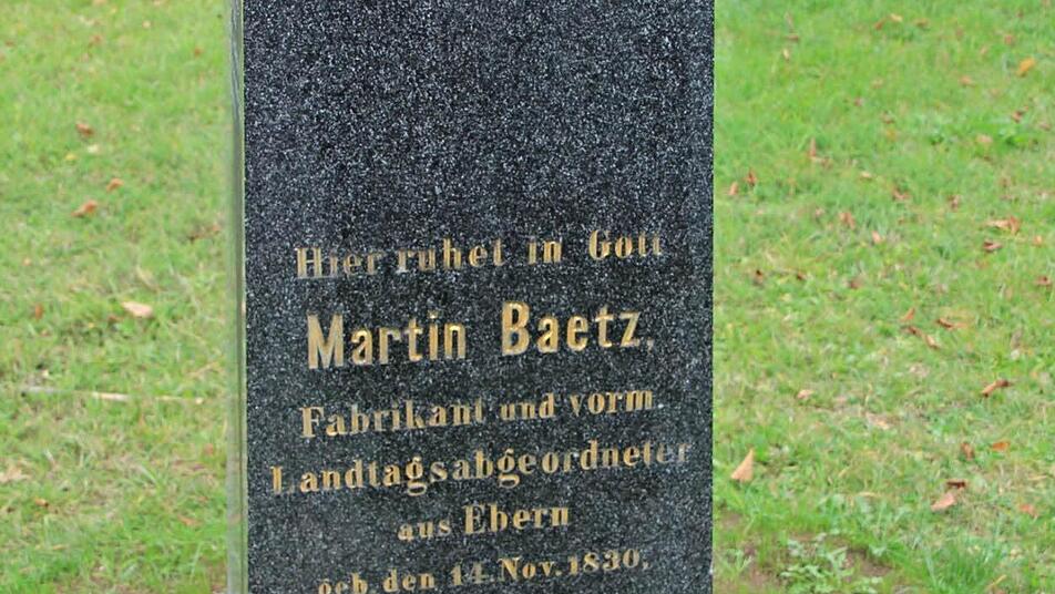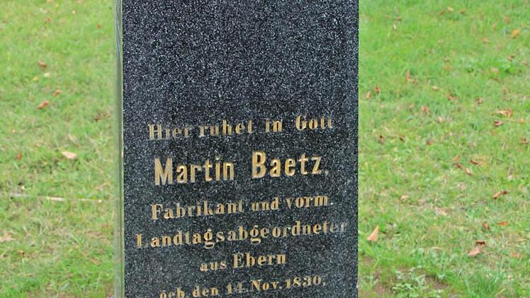 Johann Martin Baetz war ein fränkisch-bayerischer Unternehmer und Landespolitiker, der am 14. November 1830 in Memmelsdorf in Unterfranken geboren wurde und am 22. November 1885 in Ebern gestorben ist. Andreas Jost aus Wertheim am Main, ein Ur-Ur-Ur-Enkel von Martin Baetz, war zu dieser Feierstunde in die Haßberge gekommen.