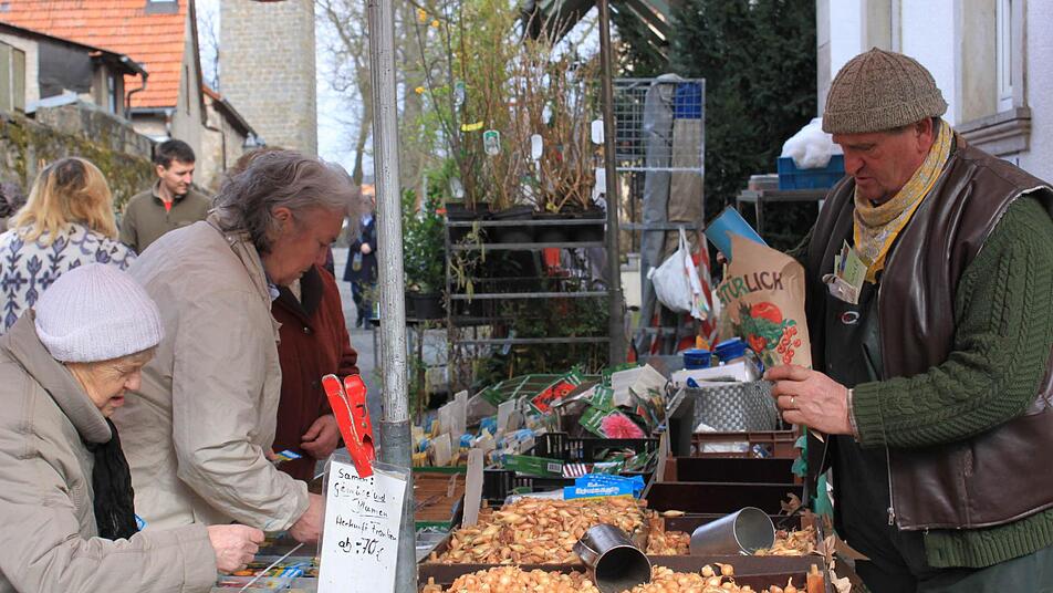 Besonders für die Gärten kauften die Marktbesucher denn auch ein. Steckzwiebeln, Primeln und Sämereien waren nebst den ersten Staudenpflanzen und diversen Werkzeugen für die Gartenarbeit der Verkaufsschlager. Da aber auch noch ein paar kalte Tage drohen verkauften sich auch bunte, frühlingshafte Schals gut. Wichtig nach dem dunklen Winter waren auf jeden Fall bunte Farben.