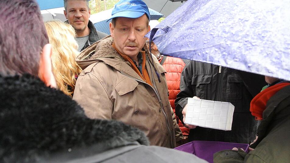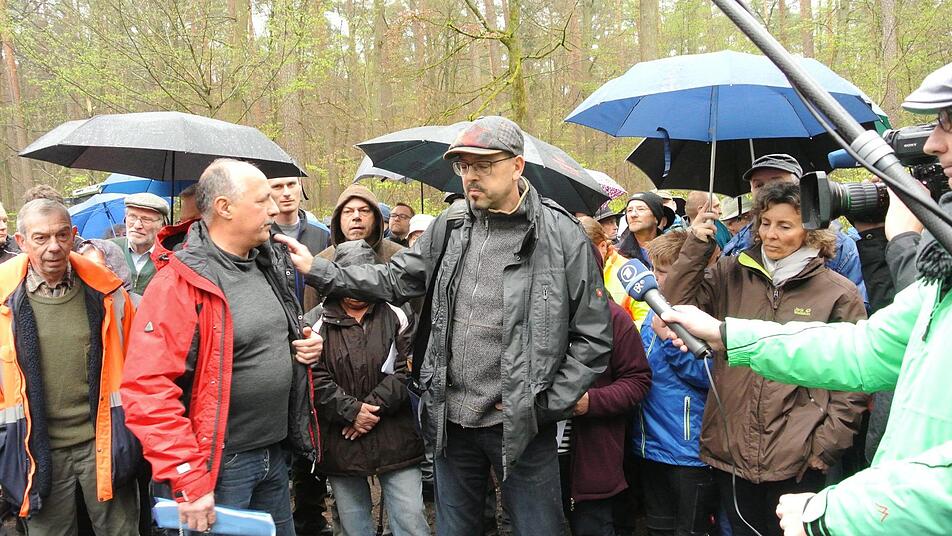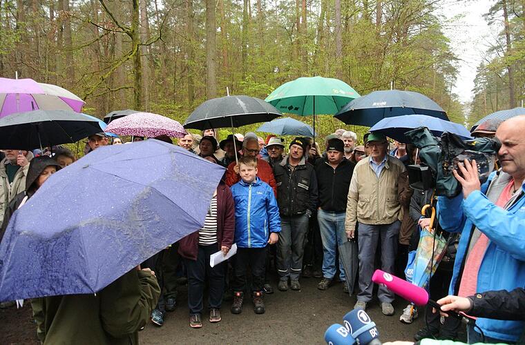 So kamen der Bayerische Rundfunk und weitere Kamerateams auf ihre Kosten. Sie nahmen jede Menge O-Töne der empörten Rechtlergemeinde auf. Berthold Amling etwa bezog sich auf das Verwaltungsgerichtsurteil aus Würzburg, wonach das Holz zu verteilen sei, man poche auf die aktive Holzzuweisung.