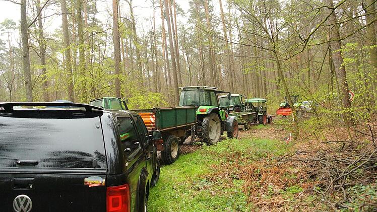 So mancher hatte seine Schutzkleidung an, den Helm mit den Lärmschutzkopfhörern auf und die Motorsäge dabei, viele waren mit ihren Traktoren in den Wald gefahren. Da warnte die Staatsbeauftragte für das Rechtler-Wesen in Stettfeld: "Das Holz wird nicht geholt, bevor das Geld da ist." Sie werde sonst die Polizei verständigen, führte sie ruhig aus, das sei nämlich Diebstahl.