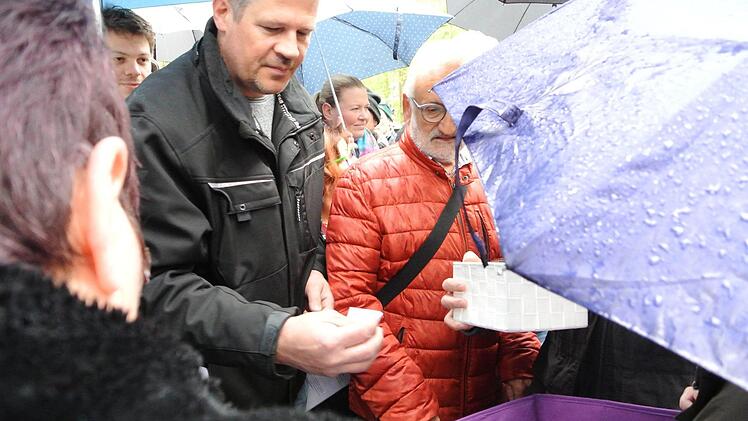 Protestbekundungen, Lachen, Raunen und Klatschen begleiteten die Wortmeldungen: "Des ist doch verarscht!" "Des mein' ich auch!" "Des ist doch a Witz!" "A Chaos. A Chaos wie eh und je!" Die Volksseele kochte. Gleichwohl ruhig und unbeeindruckt blieben die Vertreter der Gemeinde. Die Los-Vergabe erfolgte schließlich geordnet - freilich begleitet von so manchem Kommentar.