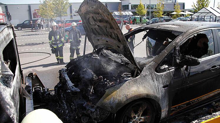 Der Opel, von dem das Feuer ausging, brannte komplett aus. Der Schaden hier beträgt nach Polizeiangaben 5000 Euro.