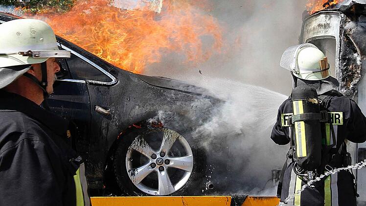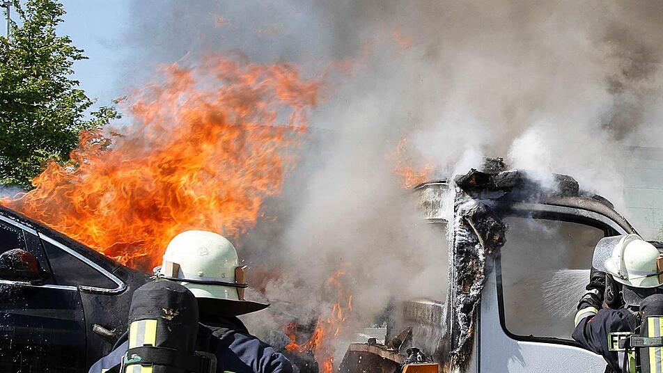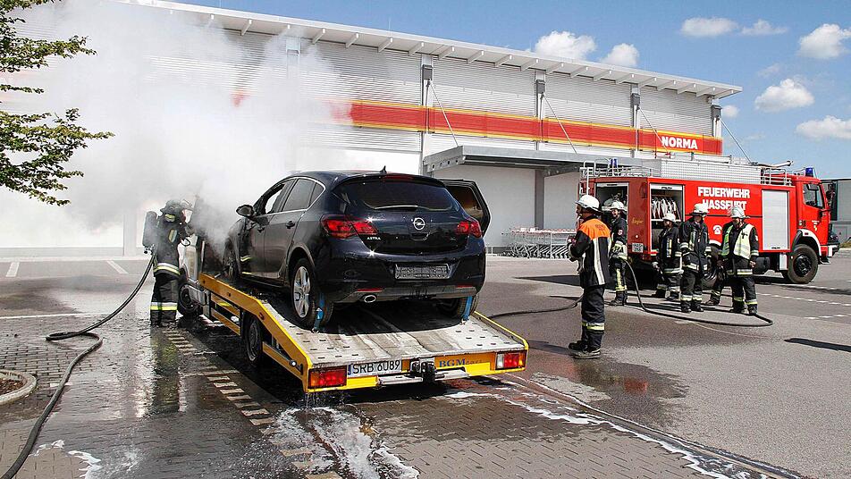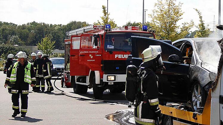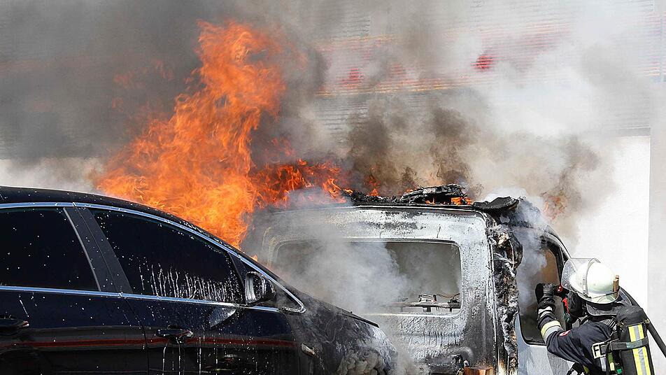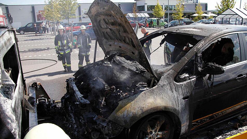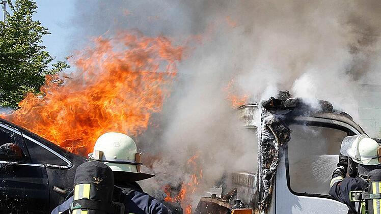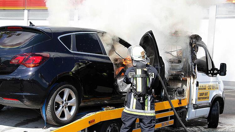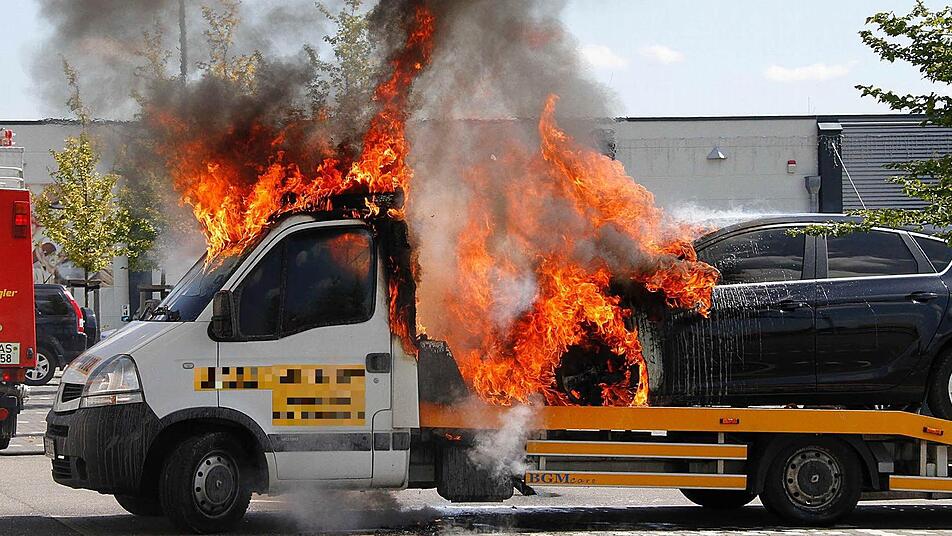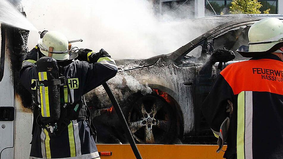 Auf dem Parkplatz eines Supermarktes in Haßfurt ging am Donnerstagmittag ein Auto und dann auch der Transporter in Flammen auf. Insgesamt entstand dabei ein Schaden von 20 000 Euro. Der Wagen war auf der Ladefläche eines Lastwagens abgestellt und sollte nach Polen transportiert werden.