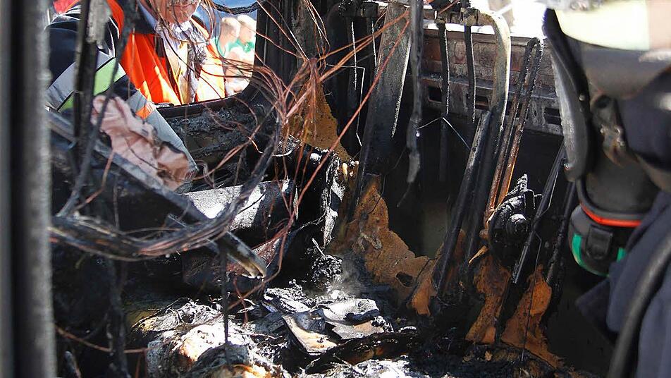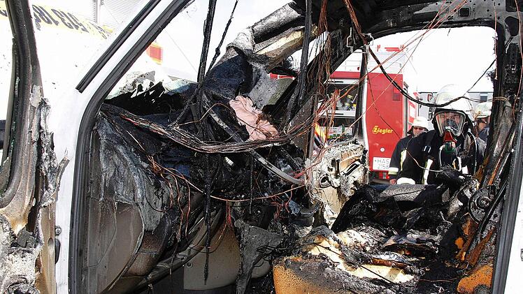 Erste Versuche umstehender Personen, die Flammen zu löschen, scheiterten. Das Feuer breitete sich weiter aus, sodass schließlich auch der Transporter brannte. Die Feuerwehr Haßfurt brachte die Flammen dann schließlich unter Kontrolle. Nach etwas mehr als einer Stunde waren die Lösch- und Aufräumarbeiten beendet.