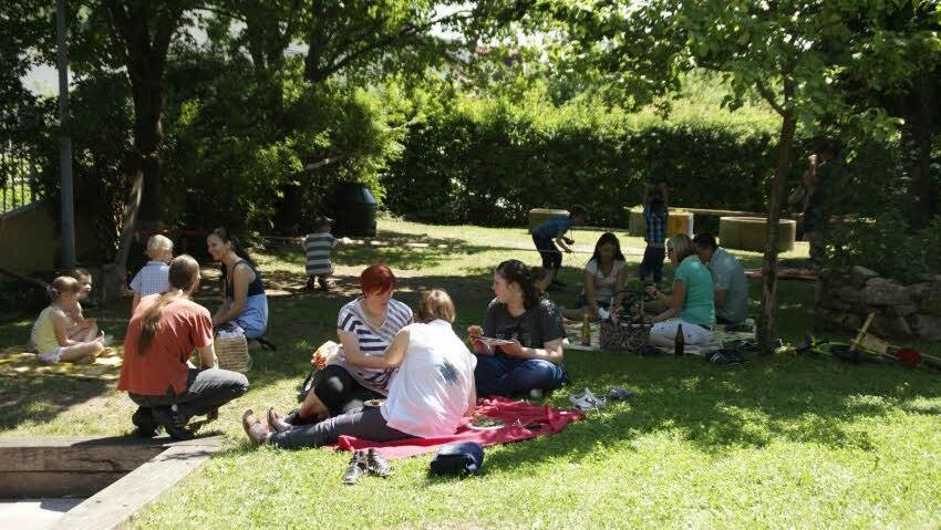 Nach dem Gottesdienst, zu dem die Kindergartenkinder alle Gruppen in der Gemeinde eingeladen hatten, ging es in einem fröhlichen Zug zum Kindergarten. Dort kamen beim Familienpicknick kamen die Generationen ins Gespräch. Das Netzwerk "Bürger helfen Bürgern" stellte sich vor, und die "Ehemaligen" des Kindergartens blätterten in alten Fotoalben.