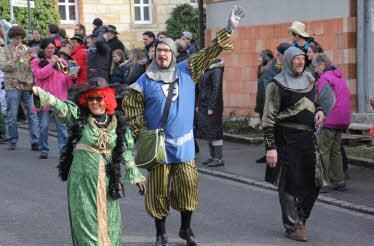 Angeführt wurde der Umzug vom "Ritter von Memmendorf" in Person des Bürgermeisters Helmut Dietz. Er wurde begleitet vom "Ritter vom Reußenberg". Unter dem Kettenhemd steckte Gemeinderat Jürgen Fromm und als holde Weiblichkeit wurden die beiden "edlen Rittersleut" von der "Hofdame des Memmendorfer Ritters", in Person von Kreis- und Gemeinderätin Birgit Finzel, begleitet.