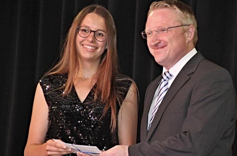 Beste Abiturnoten Leonie Kröner (1,2), Ebern, Henrik Schleicher (1,3), Rentweinsdorf und Alina Beierlieb (1,5), Gerach.