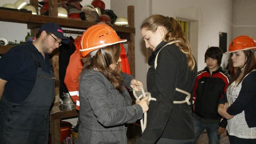 Die ersten zehn Absolventen legten sich schon beim Zeltlager der Kreis-Jugendfeuerwehr Ende Juli/Anfang August mächtig ins Zeug. Weitere 13 Anwärter traten jetzt an, um in Gegenwart von Kreisbrandmeister Johannes Krines aus Sand zu zeigen, was sie schon gelernt haben. Grundwissen und Grundfertigkeiten wurden geprüft, etwa das korrekte Binden eines Rettungsgurtes aus einem Tau, das Wissen über die Ausstattung des Fahrzeugs oder das zielgerichtete Ausrollen des Schlauchs.