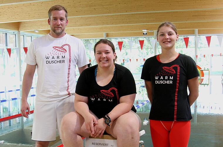 Neben diesen drei "Verrückten" aus dem "Team Warmduscher" beteiligten sich natürlich viele Jugendliche und Erwachsene, die aus "reinem Spaßfaktor" und Spaß am Schwimmen sich an dieser Veranstaltung beteiligten. Aber eine Urkunde erhielt jeder Teilnehmer nach Beendigung seiner Schwimmstrecke.
