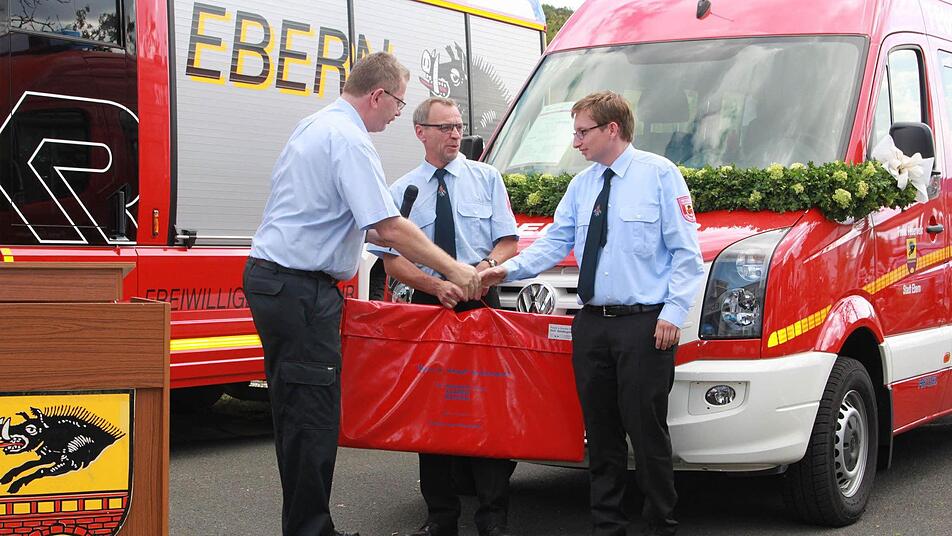 Zwei neue Fahrzeuge wurden von der FFW Ebern offiziell in Betrieb genommen. Doch dabei kann es nach den Worten des Zweiten Kommandanten David Pfeufer nicht bleiben. Er fordere Geld für zusätzliche Anschaffungen.