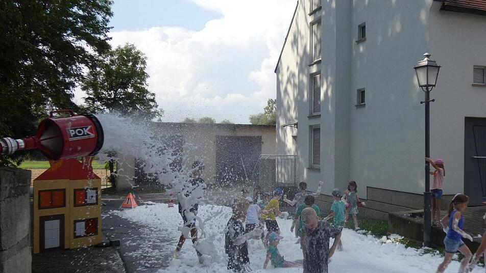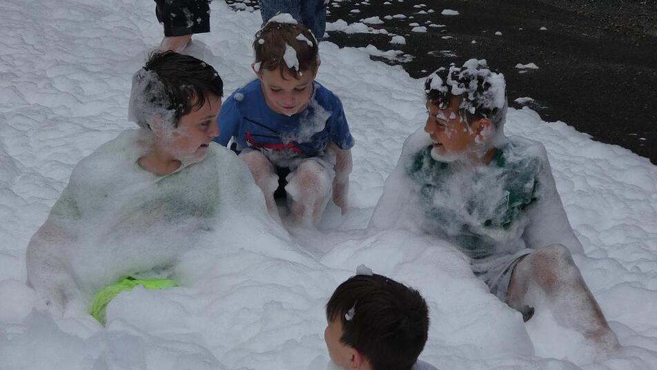 "Der Nachmittag bei der Feuerwehr war noch viel schöner als Polizeiboot fahren", sagte der fünfjährige Simon, der als jüngster Ferienprogramm-Teilnehmer neulich mit der Wasserschutzpolizei einige Runden auf dem Main drehen durfte. Am besten gefallen hat dem Vorschüler der Riesen-Schaumteppich, der als Höhepunkt der Veranstaltung die Straße vor dem Feuerwehrhaus in eine weiße Landschaft verwandelte. "Natürlich haben wir hier nicht unser übliches Schaummittel benutzt, sondern dem Wasser handelsübliches Schaumbad zugemischt", betonte Jugendsprecherin Steffi Klaus. So roch es überall nach Rosen- und Kokosduft, als die Pracht aus dem Schaumrohr spritzte.