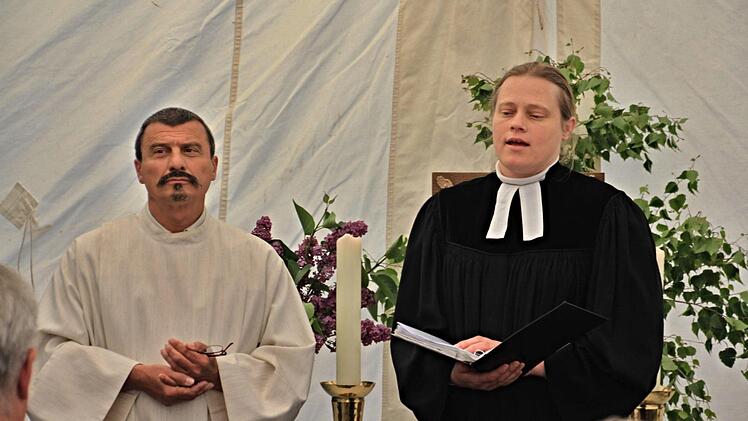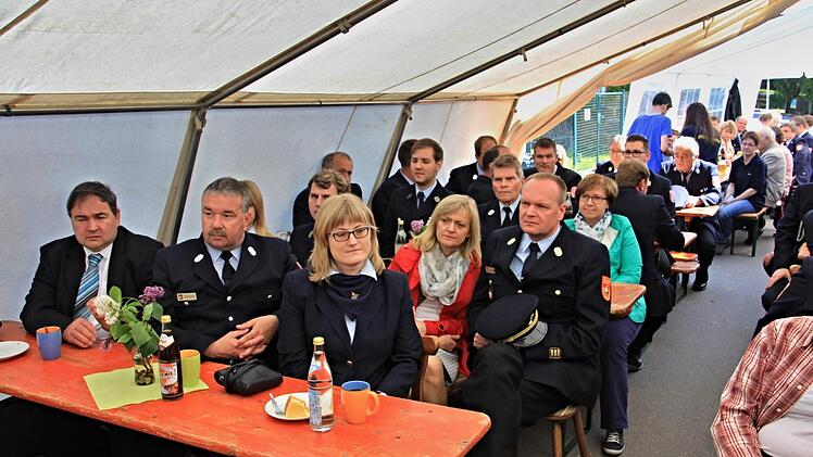 Mit einem Gottesdienst, gehalten von Pfarrerin Sonja von Aschen und Michael Reubel, Feuerwehrseelsorger aus dem Landkreis Coburg, begann der Gemeindefeuerwehrtag. "Wir sehen heute hier Uniformen und Menschen die mit Herz und Seele ihren Feuerwehrdienst verrichten", sagte die Pfarrerin. Im Dialog mit Michael Reubel arbeitete sie heraus, was wichtig ist um helfen zu können und um gemeinsam etwas zu erreichen. "Viele sitzen hier, die immer wieder hier rufen, wenn sie gebraucht werden", sagte die Pfarrerin. Auch gehe es nicht ohne Obrigkeit um geordnete Einsätze durchzuführen. "Die Feuerwehren können darauf vertrauen, dass Gott sie nicht im Stich lässt", so die Geistliche.