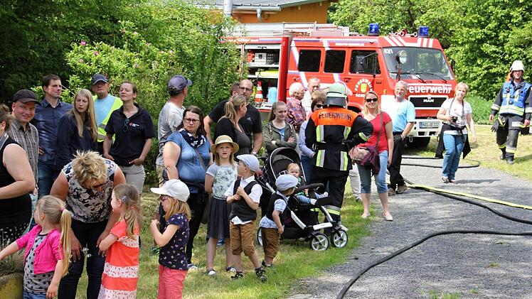 Eine Feuerwehreinsatzübung darf beim Gemeindefeuerwehrtag nicht fehlen. Eine solche fand in Obermerzbach am "Michaelshof" statt, der zur Einrichtung des Sonnenhofes gehört. Teilgenommen haben an dieser Übung die Gemeindefeuerwehren aus Untermerzbach, die Werksfeuerwehr der Firma FTE in Ebern mit einer Drehleiter und die BRK-Bereitschaft Untermerzbach.