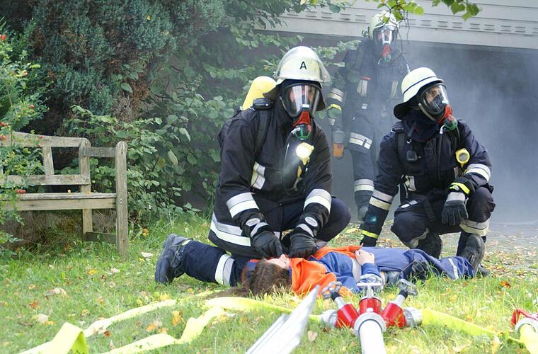 Zwölf Verletzte hatten der Weisbrunner Kommandant Thomas Neeb und sein Vorbereitungsteam in den Brauerei-Gebäuden verteilt und die Nebelmaschine angeworfen - keine leichte Aufgabe für die Atemschutzgeräteträger. Sie haben alle Verletzten bergen und der Sanitätsversorgung zuführen können - aber die Meldungen kamen nicht alle bei der Einsatzleitung an, was KBM Lothar Ullmann später zur einzigen kleinen Kritik Anlass gab: immer darauf achten, dass auch alle abgesetzten Meldungen bis zur Einsatzleitung vordringen. Sonst wird im Ernstfall weitergesucht.