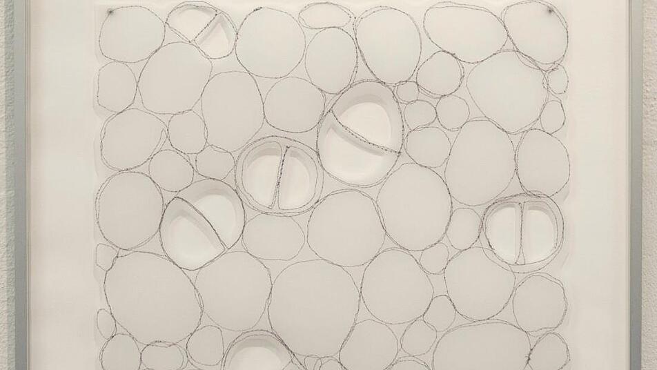 Michaela Schwarzmanns künstlerisches Medium ist, wie Stefan Andritschke sagt, in erster Linie Papier: "Es entspricht der Leichtigkeit und Transparenz, die sie in ihren Arbeiten erzielen will." Die Bilder und Objekte wirken schwerelos und fragil, an feinen Fäden aufgehängt schwebt die Form im Raum und bezieht diesen mit ein. "Bei früheren Arbeiten war das Papier mit Struktur bedeckt, bei neueren Arbeiten wirkt die Form an sich", sagt Schwarzmann, die mit ihrer Kunst im Übrigen bereits einige Preise eingeheimst hat.