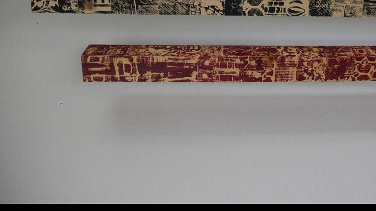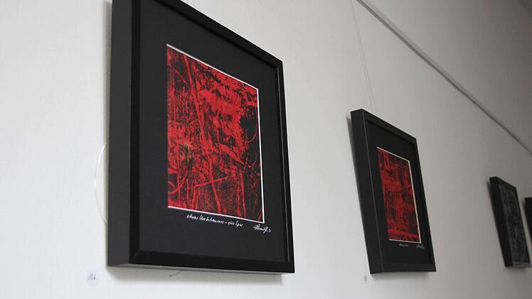 Christiane Weber stammt aus Aidhausen und lebt in Nürnberg. Sie druckt ihre Bilder mit verschiedenen Materialien, "vom Fahrradschlauch bis zum Holzstück". Ihr wichtigstes Werkzeug für ihre Kunst ist das Skalpell, sagt sie. Inspiration für die Arbeiten sind für sie "Brüche im Leben". Sie versteckt Geschichten in ihren Bildern.