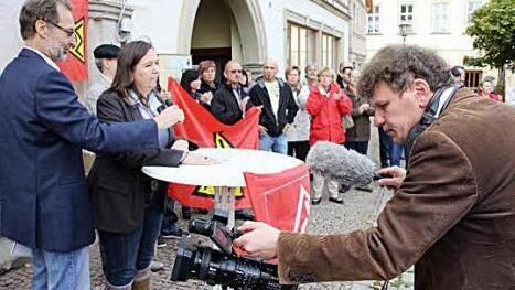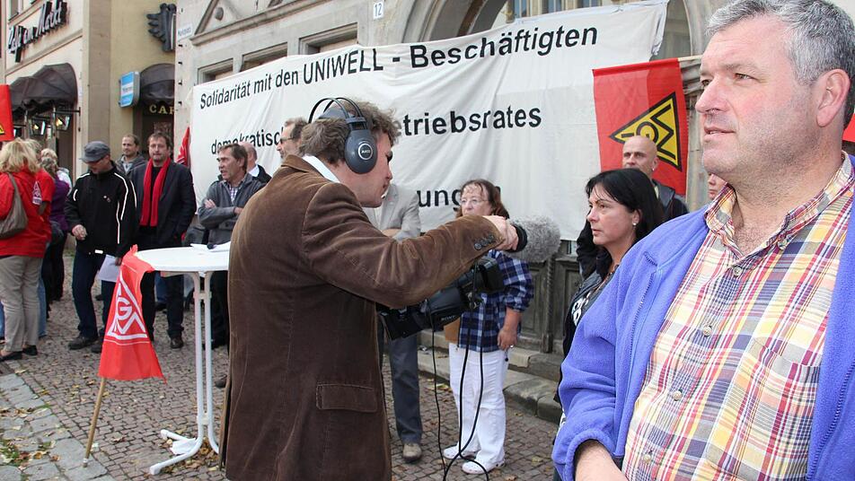 Sie filmten um die Wette, die Kamerateams zweier Fernsehsender und ein Uniwell-Abteilungsleiter. Im Fokus hatten sie gemeinsam die Redner und rund 130 Zuhörer bei der Solidaritätskundgebung für die entlassenen Uniwell-Mitarbeiter. Immer wieder gefordert wurde die Rücknahme der Kündigungen und der Hausverbote sowie die Zulassung einer geregelten Betriebsratswahl. "Es ist nie zu spät", reichte der Zweite Bevollmächtigte der IG Metall-Verwaltungsstelle Bamberg, Dieter Reichert, verbal die Hand.