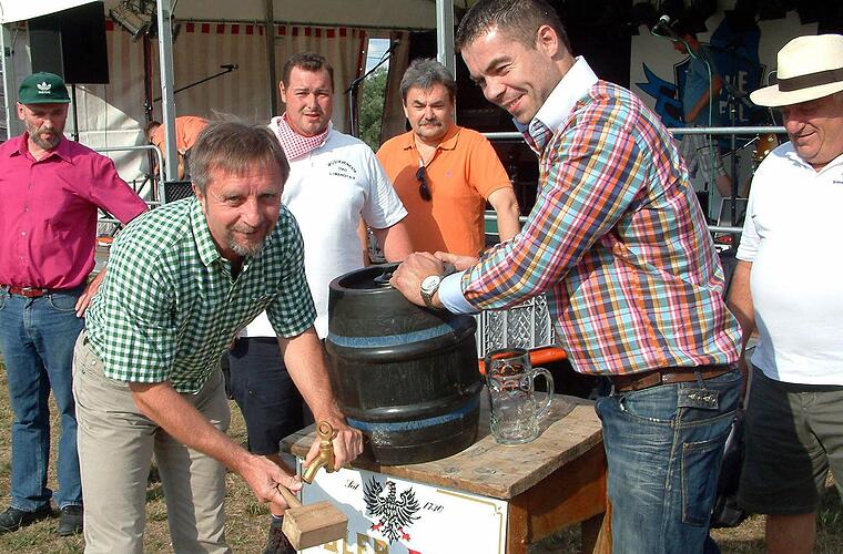 Den offiziellen Bieranstich nahm diesmal Eltmanns Dritter Bürgermeister Peter Klein vor. Nach zwei Hammerschlägen zapfte er die erste frische Maß. Unter dem Applaus mehrerer Stadträte erklärte er das 16. Limbacher Flößerfest als zweitgrößte Veranstaltung im Stadtbereich Eltmanns für eröffnet. "In diesem Jahr wird es nun schon zum 16. Mal ausgetragen. Ich danke den vielen Helfern aus den fünf Limbacher Ortsvereinen für ihre Zusammenarbeit bei diesem Fest, das einen festen Platz im Terminkalender unserer Stadt hat", so Peter Klein.