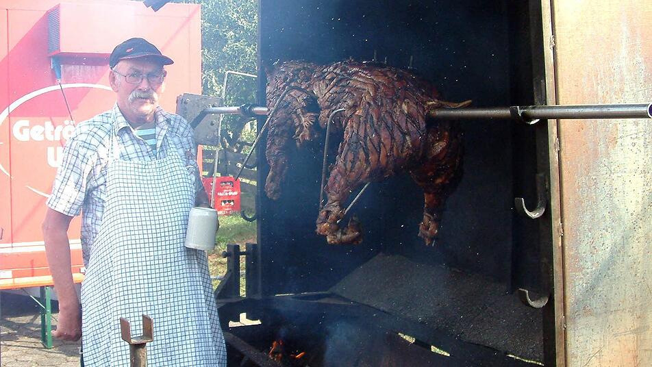 Schon seit dem frühen Morgen drehte sich die von Raimund Geheeb über Holzkohlen gerillte "Sau am Spieß", um nach dem Bieranstich als besonderes Schmankerl innerhalb kurzer Zeit portionsweise von den Festbesuchern verspeist zu werden.