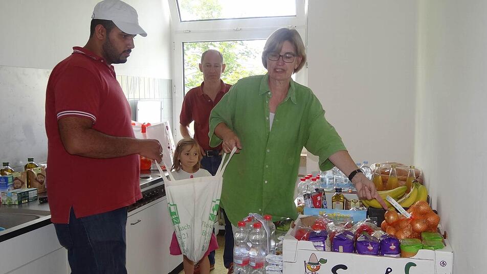 Reden mit Händen und Füßen Franz Josef Zeheter hält sich jetzt im Hintergrund. Er plant schon den Stadtrundgang, den er mit den Neuankömmlingen und anderen Ehrenamtlichen machen wird. Ob die Menschen mit Geld nach Ebern gekommen sind, weiß er nicht. Erst morgen werden sie mit dem Asylbus nach Haßfurt fahren und im Sozialamt ihr Taschengeld abholen. Katrin Ruppert und Sabine Klüpfel verteilen deshalb Lebensmittel an die Familien. "Die brauchen ja heute auch noch was zum Essen", so Sabine Klüpfel. Bei Verständigungsproblemen wechseln die beiden Frauen einfach auf die Hand-und-Fußsprache. Die verstehen Menschen aus allen Kulturen.