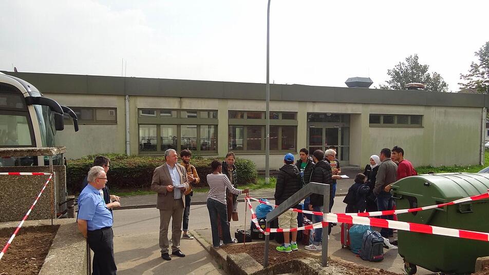 Es ist Dienstag, 11 Uhr. Franz Josef Zeheter läuft den Gehsteig vor der Gemeinschaftsunterkunft für Asylbewerber in der Graf-Stauffenberg-Straße 2 im ehemaligen Kasernengelände auf und ab. Aus dem zweiten Stock des Gebäudes winken die Helfer von Franz Hümmer. Er ist Mitarbeiter bei der Regierung von Unterfranken und für die Gemeinschaftsunterkünfte von Flüchtlingen und Asylbewerbern im Landkreis Haßberge zuständig.