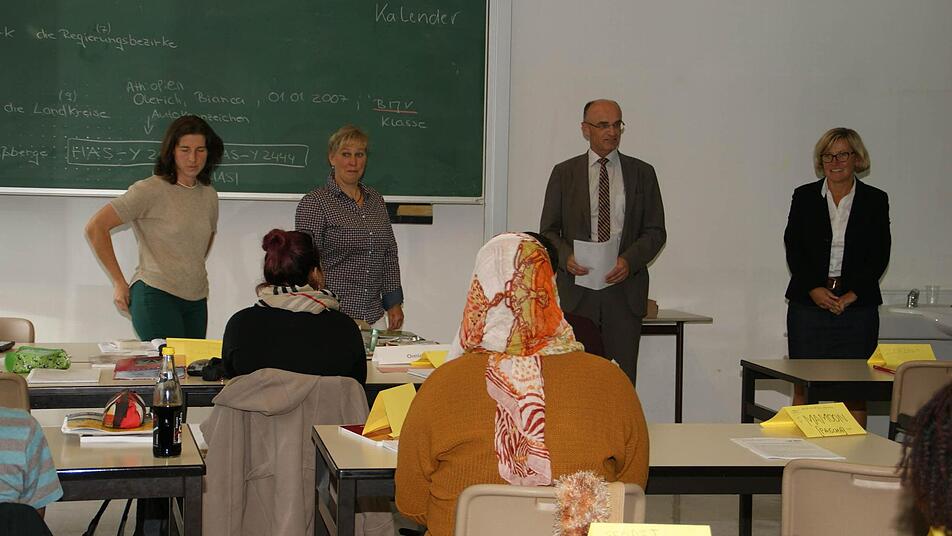 "Der Unterricht läuft prächtig, sie lernen alle sehr schnell und sind sehr wissbegierig", beschrieb Klassenleiterin Bianca Olerich ihre Schüler im Gespräch mit Schneider. Jegliche anfängliche Skepsis bei den Lehrkräften sei mittlerweile einer regelrechten Euphorie gewichen, bestätigte auch Monika Hoffmann. Ihr obliegt es mit Unterstützung von Elisabeth Winkler, das wichtigste Fach in dieser Klasse zu unterrichten: Deutsch.