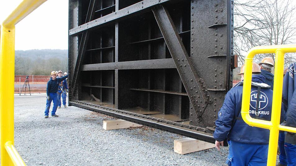 Schwerstarbeit Wenn man es mit Schleusen und Schleusentoren zu tun hat, muss man in großen Maßstäben denken. Jeder einzelne Torflügel wiegt 36 Tonnen, manche Mutter, die die Schrauben hält, kann ein Mann alleine kaum heben.