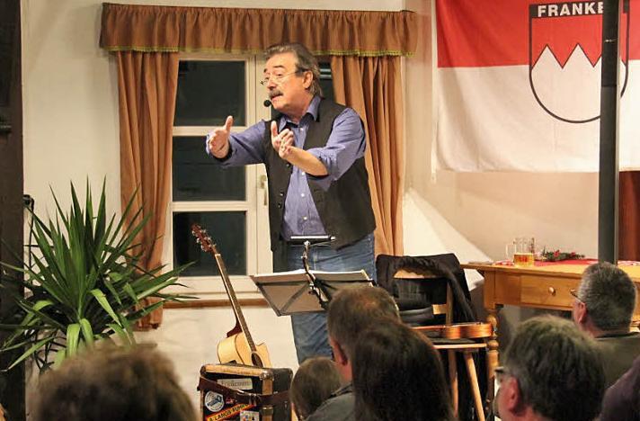 Er braucht keine Aufbauhelfer, die paar Utensilien für seinen Auftritt stöpselt er selbst zusammen. Gitarre, Quetschen, Mikro, technisch ist Goletz ein Minimalist, aber nur technisch.Ansonsten sprüht er vor Witz und fränkisch-derbem Charme. "Ibind ist schon meine zweite Heimat, wie Untersteinach halt auch fränkisches Hinterland", sagt er beim Jubiläumsauftritt.