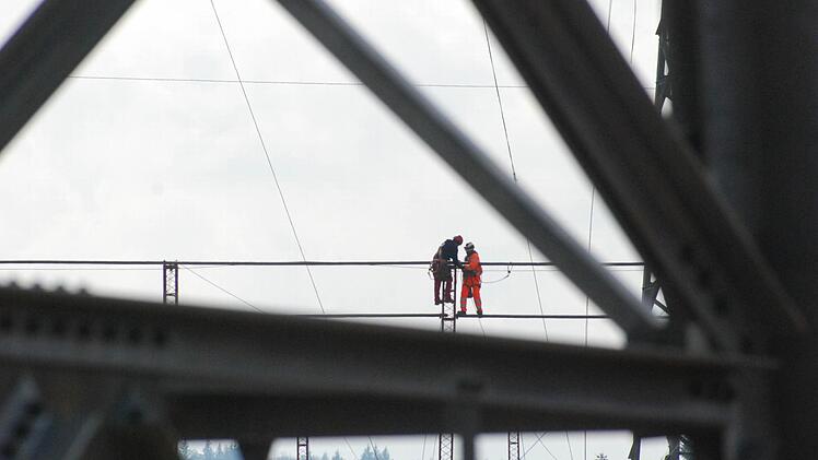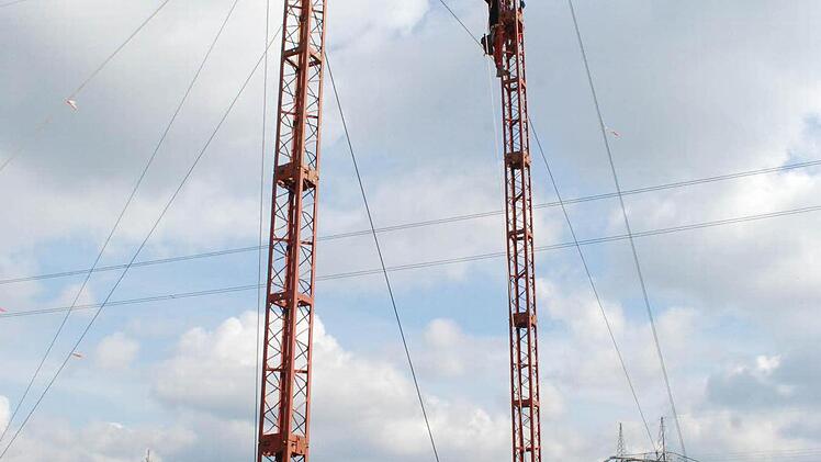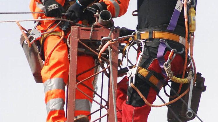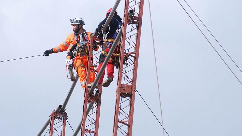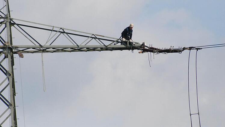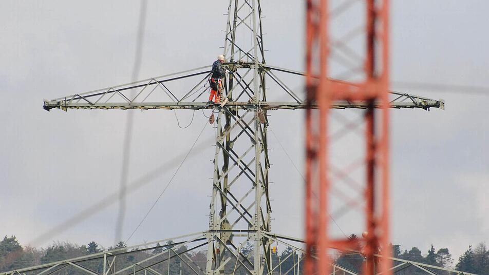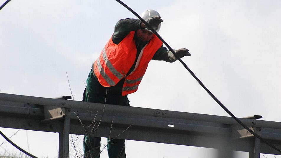 Die Firma Tennet, die im Umspannwerk die Strippen zieht, nutzt für die Aktion das Wissen einer Firma aus Landshut, und deren Mannschaft besteht unter anderem aus österreichischen Bergsteigern. Bergsteigern? Jawohl. Wer auf die 60 Meter hohen Gittermasten und auf das weniger hohe, aber wackeligere Schutzgerüst beidseits der A70 kraxeln muss, braucht nicht nur Fachwissen. Er muss auch schwindelfrei sein und sich mit Karabinerhaken, Knoten und Seilen auskennen.