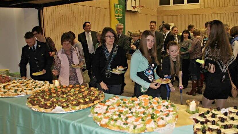 Musikalisch wurde die Feierstunde von der Fränkischen Volksmusikgruppe Gereuth begleitet. Zum Frankenlied und der Bayernhymne erklangen die Stimmen der Gäste, bevor das Buffet "gestürmt" wurde.