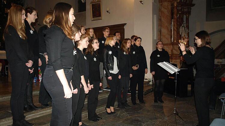 Anja Jäger leitete gleich zwei Ensembles: Erst ihren Jugendchor "Kapala Red", der mit Elan und forscher Rhythmik englischsprachige Weihnachtslieder interpretierte - alles auswendig.
