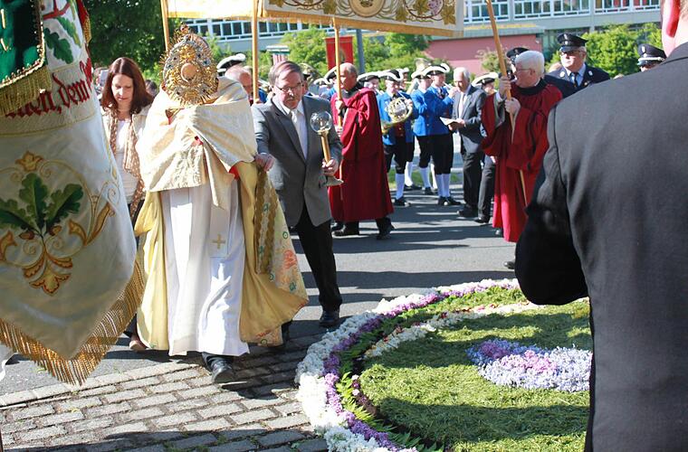 Mehr als Glück hatten die Gläubigen in Ebern. Obwohl für das gesamte Wochenende und erst recht den Feiertag Fronleichnam Regen vorhergesagt wurde schien während der Prozession die Sonne.