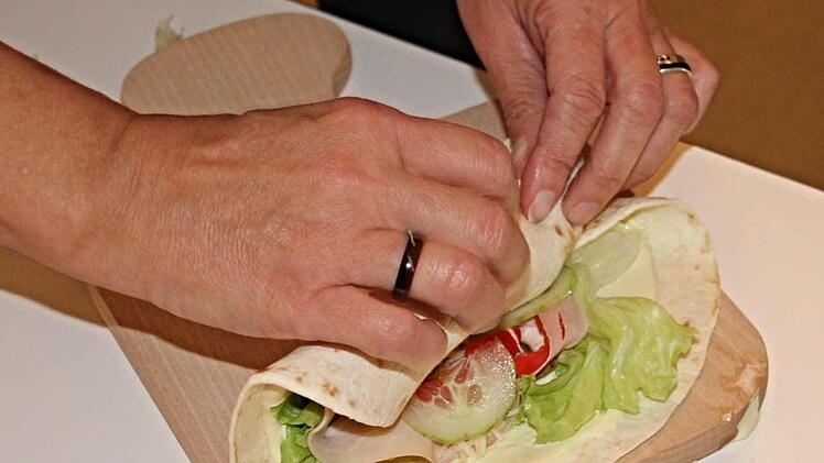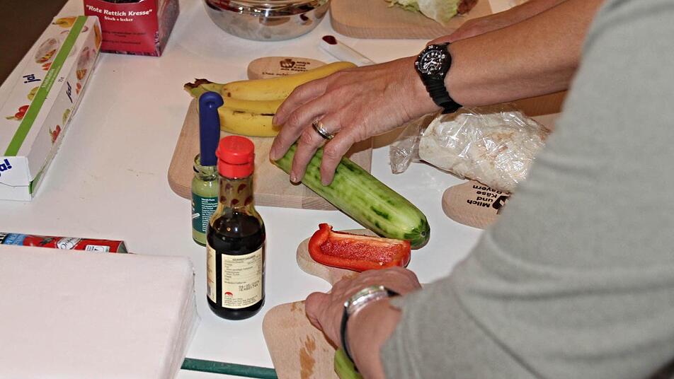 Dicht umlagert, vor allem von Frauen, ist der Stand, an dem Ernährungsberaterin Iris Wild aus Baunach Auskunft zu einer gesunden Ernährung gibt. Unter ihrer Anleitung kann man sich appetitliche, optisch ansprechende und vor allem gesunde Häppchen zusammenstellen.