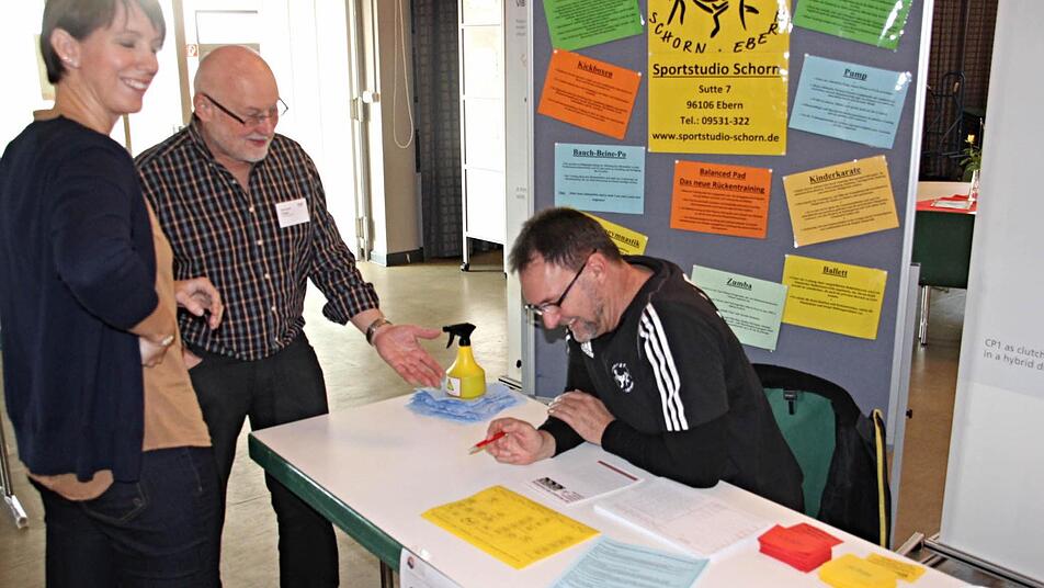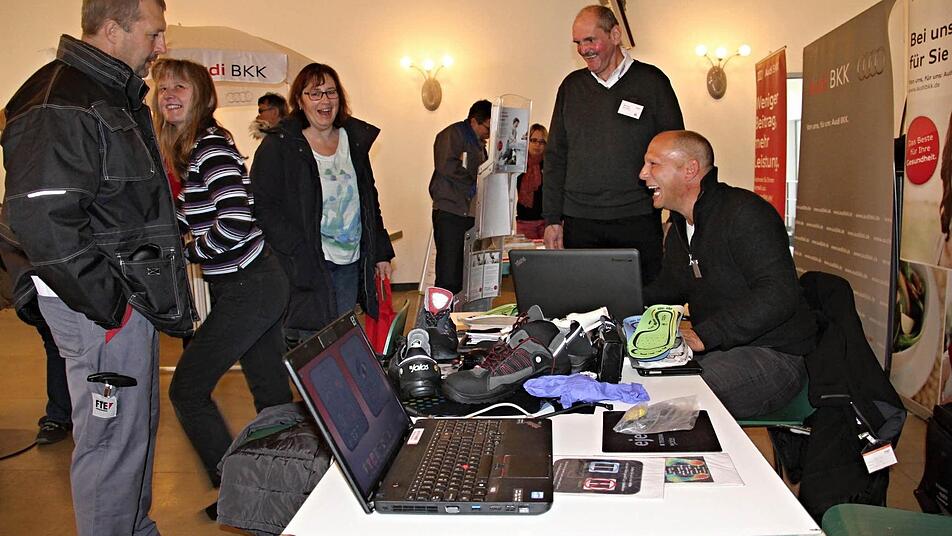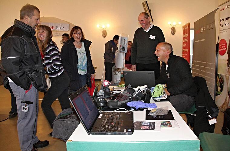 Mittels einer Fußvermessung können Vorschläge für einen idealen Arbeits- oder Freizeitschuh ermittelt werden. Auch die betriebseigene Krankenkasse (BKK) steht parat, um über ihre Leistungen zu informieren. Mitarbeiter eines Sportstudios stellen ihre Angebote für verschiedene Altersklassen vor. "Sport und Fitness gehört einfach zu einer gesunden Ernährung dazu", sagt der Mitarbeiter.