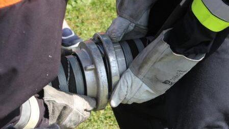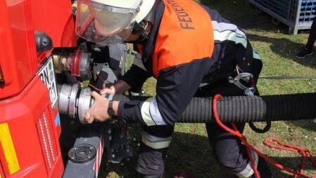 Eine Routineaufgabe der Feuerwehr, das Saugschlauchkoppeln, war die nächste Disziplin. Schnelligkeit und Teamarbeit waren hier gefragt, um erfolgreich und schnell zu sein. Vier Saugrohre mussten zusammengekoppelt werden, mit Seilschlingen versehen und am Feuerwehrauto an der Druckpumpe angeschlossen werden.