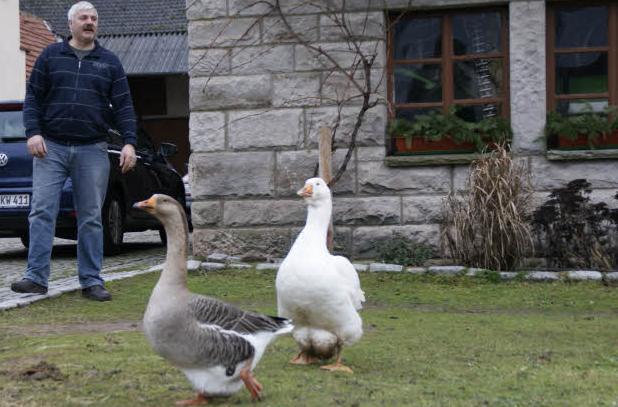 "Meine Tochter hat immer was in der Hand, wenn sie hinten in den Garten kommt", erzählt Friedlinde Albert. "Gänse sind extrem mutig," bestätigt Sohn Hans. "Die gehen auch auf Zwei-Meter-Männer los, die den Hof betreten." Das ganze Dorf und viele regelmäßige Passanten kennen Paul und Pauline und wünschen ihnen ein langes Leben - Weihnachten kann ihnen nun ja nicht mehr gefährlich werden.