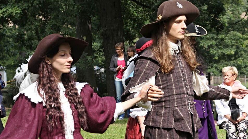 Das Zeitalter des Barock (1600 bis 1720) ist lange vorbei. Am Wochenende lebte es im weitläufigen Schlossgarten in Gereuth wieder auf. Barockgekleidete Gestalten in bunten Gewändern hatten den Garten der fast 400 Jahre alten Schlossanlage bevölkert. Damit erinnerten die Besitzer des Schlosses an das Jahr 1635, als in den unruhigen Jahren des 30-jährigen Krieges eine Gruppe von Adeligen auf ihrer Reise von Wien nach Erfurt mit ihrer Dienerschaft im Schloss Gereuth Halt machte.