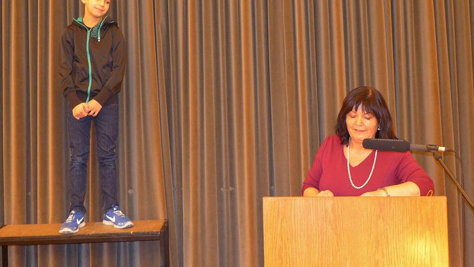 Weltmeister Zwei außergewöhnliche sportliche Leistungen, auf die die ganze Gemeinde stolz ist, wurden freudig beklatscht. "Wir haben einen Weltmeister in der Gemeinde", wandte sich die Bürgermeisterin an die Gäste im Festsaal und bat Darius Strätz auf das eigens für ihn herbeigeschaffte "Treppchen". Der elfjährige Schüler ist Bayerischer Meister, Deutscher Meister und seit 2013 Weltmeister im Kickboxen. Bei den US-Open in Orlando (Florida) erkämpfte er diesen Titel und wurde zudem Vizeweltmeister im Pointfighting. Im Landkreis Haßberge wurde Darius zum "Sportler des Jahres gewählt". Für Annalena Hofmann, die als Tänzerin, Mathe-Genie, aber auch als Klassenbeste in der Grundschule Kirchlauter Aufmerksamkeit errang, gab es ebenfalls lobende Worte. Ihr Titel "Unterfränkische Meisterin im Eiskunstlaufen" und der dritte Platz im fränkischen Maßstab für die Zehnjährige aus Lußberg seien aller Achtung wert.