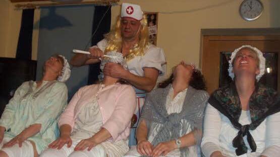 Für Lachsalven sorgte auch der Vortrag "IM ZUG/Bahnhof", dargeboten von Manuela Walz und Silke Leipold. Sie brachten den Faschingsfreunden den Unterschied von zwei Frauen, einer Stadtfrau und einer Landfrau, nahe. Sie brachten zum Besten, wie man ganz ohne Worte den Unterschied beim Schminken sehen kann. Die eine benutzt Kosmetik, die andere hingegen die Produkte ihres Einkaufs (Margarine,Schuhcreme, Marmelade usw.).