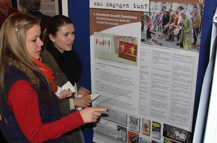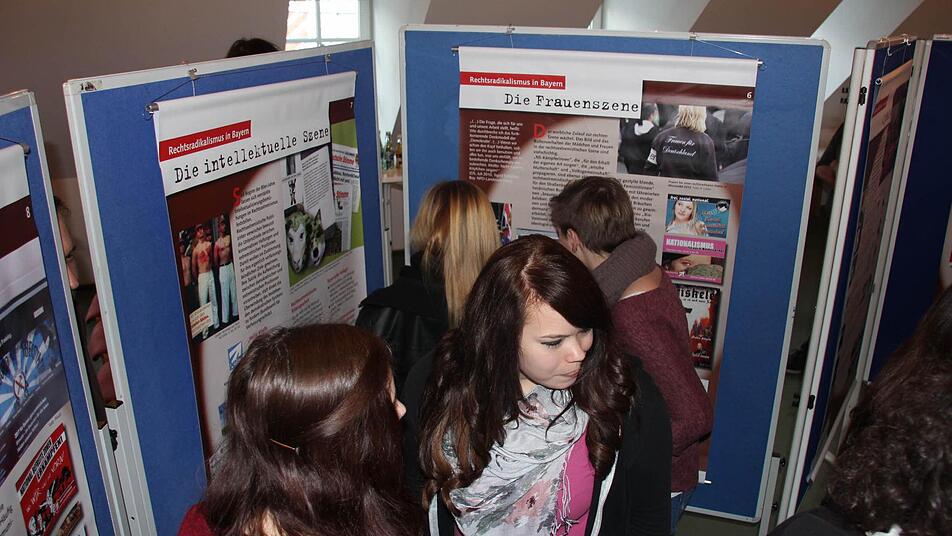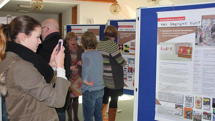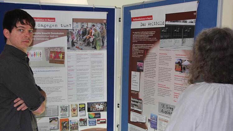 Eine Woche lang können sich Schulklassen im Saal der Raiffeisen-Volksbank über Formen und Gefahren rechtsradikalen Gedankengutes informieren und lernen, wie man solchen Extremisten begegnet.