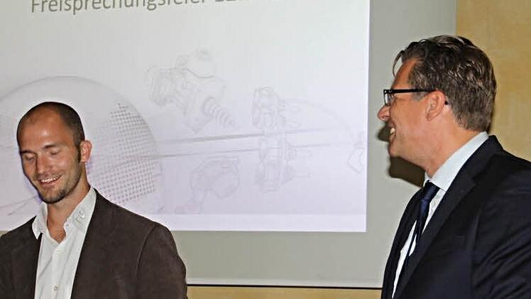 Die Zeugnisse für die Azubis überreichte Fritsch zusammen mit Lehrlingsausbildungsleiter Stephan Walter, der über jeden der Azubis einige Worte sagte. Dies waren Georg Heusinger (Mechatroniker), Lars Kunzelmann und Philipp Hojer, der auch Kammersieger wurde. Beide sind Verfahrensmechaniker.