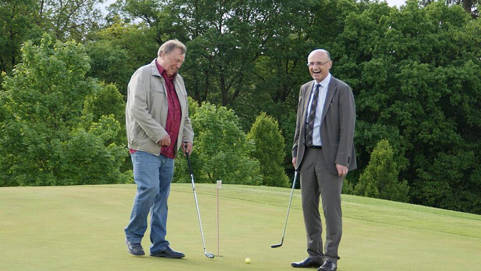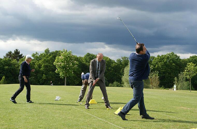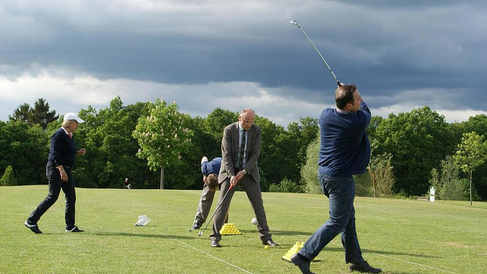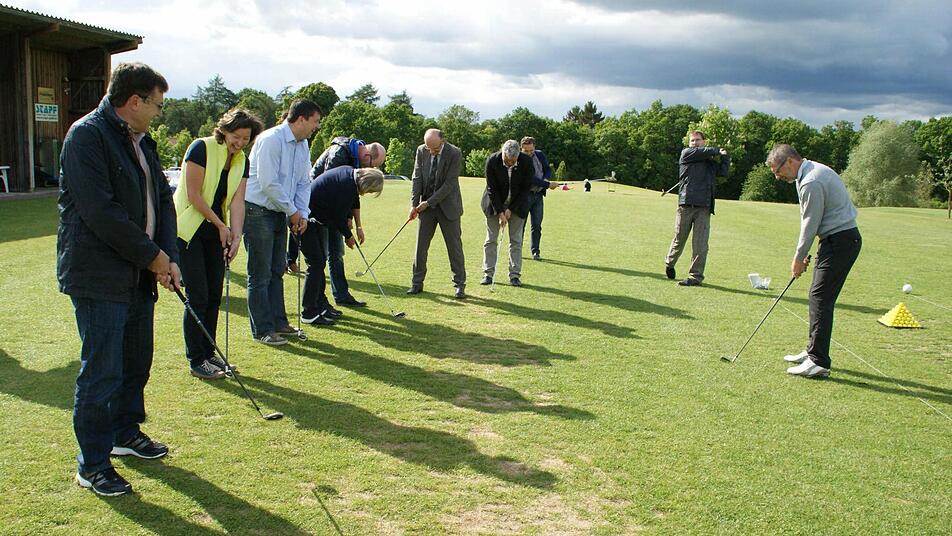 Für Günther Werner (Haßfurt) war es eine gute Gelegenheit, den etwas angestaubten Golf-Trolley wieder mal zum Einsatz zu bringen. Seit er Bürgermeister der Kreisstadt ist, blieb für Golf keine Zeit mehr. Auch Dieter Möhring (Aidhausen) hat früher gegolft - rein dienstlich. Als Offizier bei der Bundeswehr gehörte Golf zu den Treffen mit den amerikanischen Kollegen dazu. "Früher mal, in Amerika" hat Wolfram Thein (Maroldsweisach) gegolft, und auch Holger Baunacher (Wonfurt) hatte an der Driving Range schnell den Bogen raus. Schon vor der Wahl zum Bürgermeister kam ihm aus beruflichen Gründen die Zeit für das Golfen abhanden.