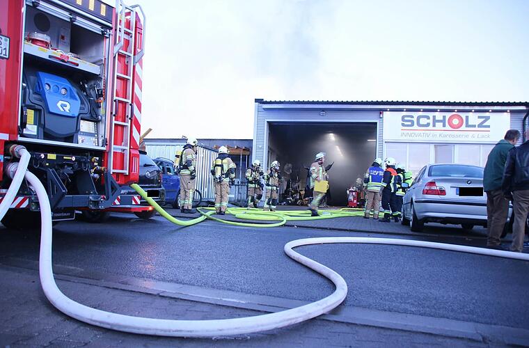Da die Gefahrenlage unklar war, sei eine höhere Alarmstufe ausgelöst worden, erklärte Kreisbrandrat Ralf Dressel. Letztlich handelte es sich um Gasflaschen, die in Brand geraten waren, aber schnell gelöscht und gekühlt werden konnten. Wegen der Rauchentwicklung entlüftete die Feuerwehr danach das Gebäude im betroffenen Betrieb.