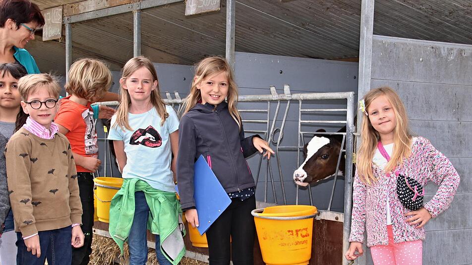 Alle Kinder freuen sich schon, wie sie sagen, auf den Besuch auf dem Bauernhof in Losbergsgereuth. Dort war am Donnerstag die Klasse 2d mit ihrer Lehrerin Sandra Keil zu Gast. Ute Ley gab sich viel Mühe mit den Kindern, hatte einiges vorbereitet, um die Schüler zum aktiven Mitwirken anzuspornen. So gab es Karten mit Tieren und anderen landwirtschaftlichen Bildern, welche die Kinder zogen, um dann auf dem weitläufigen landwirtschaftlichen Betrieb in Vierergruppen das zu erkunden, was sie auf den Bildern sahen. Angetan waren die Schüler vor allem von den possierlichen Kälbern, die einige Streicheleinheiten abbekamen. Begleitet wurden die Schüler von Hofhund "Mila", der die seltenen Gäste neugierig beäugte.