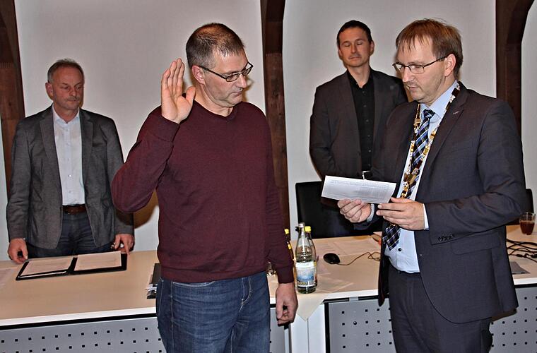 Der Bürgermeister legte seine Amtskette an und nahm dem Nachrücker, Günter Reß (SPD), in der Runde des Gemeinderates den Amtseid ab. Dieser nahm anschließend auf dem Stuhl seines Vorgängers Werner Thein Platz. Reß war bei der letzten Wahl im Jahr 2014 mit 459 Stimmen gewählt worden, wie Bürgermeister Wolfram Thein erläuterte. Er wird auch die Aufgaben seines Vorgängers im Finanz- und Forstausschuss sowie im Rechnungsprüfungsausschuss übernehmen und als stellvertretendes Mitglied im Bau- und Umweltausschuss zur Verfügung stehen.