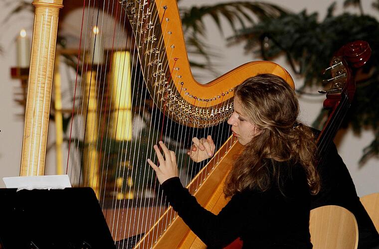 Ein tolles Klangvolumen in den Kirchenraum zauberte dann Maria Theresa Freibott mit ihrer Harfe und dem Solostück "La Source", für das sie großen Beifall bekam.