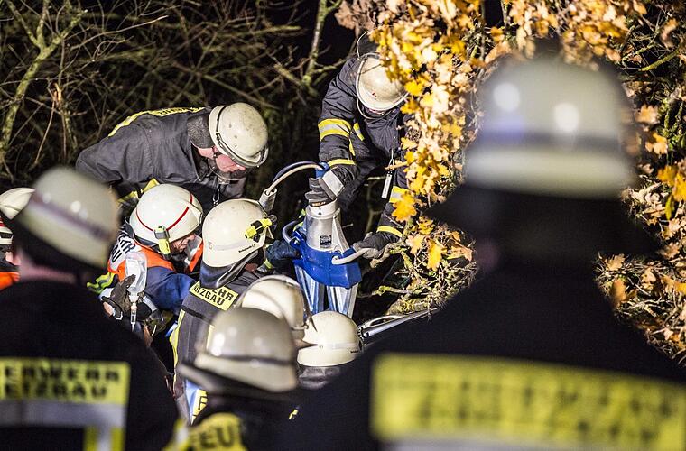 "Das Lagebild war sehr schwierig, da das Fahrzeug völlig zerstört war. Auch nachdem wir das Dach abgenommen hatten kamen wir nicht an die Person ran, um sie heraus zu ziehen. Wir haben dann mit Hilfe von Anschlagmitteln das Lenkrad weggezogen.", so der Einsatzleiter der Feuerwehr Ralf-Peter Schenk. Erst nach anderthalb-stündigen Rettungsarbeiten mit schwerem technischen Gerät konnte der Mann endlich befreit werden.