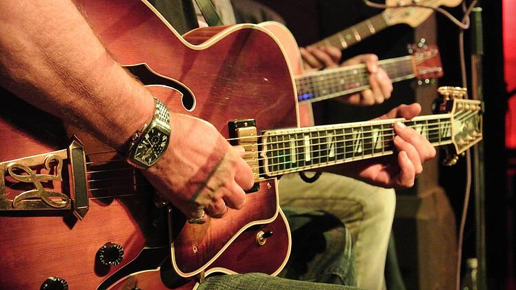 Zu später Stunde hatten sie ihre Zuhörer so in der Hand, dass sie sich dem sanften Bass von Mike Titre und den seidigen Improviationen von Toscho Todorovic richtiggehend hingaben. Mit der WDR-Bigband spielten sie, wie Todorovic plauderte, einst in großer Besetzung mit 16 Bläsern den Klassiker "Out of my mind", hier in Haßfurt kam die Fassung nackt daher, großstädtisch, elegant, ein Genuss. Ein Seufzer ging endlich durch die Reihen zur Mitternacht bei "Albatross" von Fleetwood Mac. Ein Stück, wie geschaffen für Toschos Instrument, die Heritage Eagle, ein Instrument aus der Ur-Schmiede des amerikanischen Gitarrenfertigers Gibson. Ihr Klang durchfloss den Raum wie flüssiges Gold.